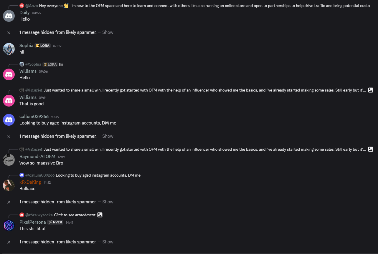 The work and hiring side is another underrated benefit. If you want to scale, you’ll eventually need help—chatters, editors, caption writers, clip makers, or people who can handle pieces of the workflow. These servers can act like a talent marketplace, but it can also work the other way: if you have a skill (chatting, prompts, content planning, clipping), you can sometimes find paid work and build connections without having a huge personal brand.